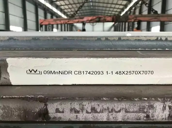 09MnNiDR: tấm thép bình áp suất nhiệt độ thấp D là chữ cái đầu tiên của bính âm thấp R là chữ cái đầu tiên của rong Bính âm 09MnNiDR, trạng thái giao hàng: chuẩn hóa hoặc chuẩn hóa + ủ + ủ -70 độ tác động ở nhiệt độ thấp Nguồn gốc: Wugang Xianggang Xingang Vũ Hán Sắt và Thép Nangang Tế Nam Sắt thép